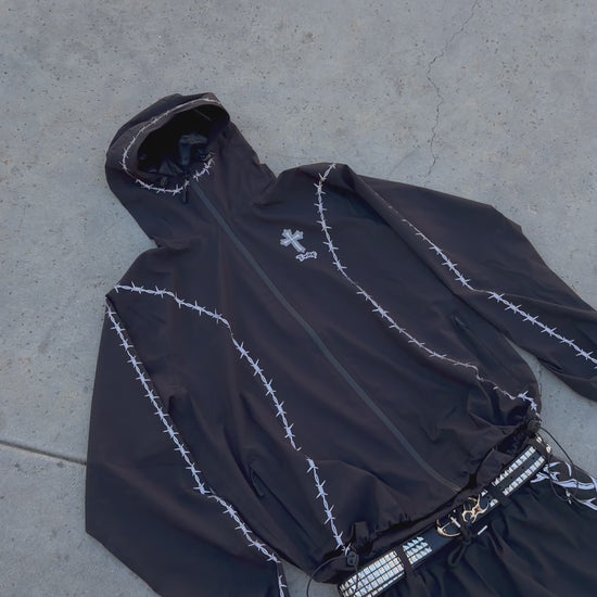 This jacket is built to move with you. Adjustable drawstrings at the hood and waist let you lock in the fit and keep the cold out. Reflective detailing adds visibility in low light, and the sleek profile pairs easily with any pair of pants but works best with Barbwire pants!